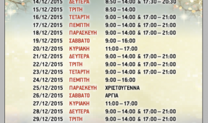 Ο Εμπορικός Σύλλογος Τρικάλων, γνωστοποιεί το προτεινόμενο εορταστικό ωράριο για την περίοδο των Χριστουγέννων και της Πρωτοχρονιάς, το οποίο ξεκινά...