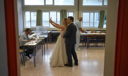 Οι δύο νέοι θέλησαν να ασκήσουν το εκλογικό τους δικαίωμα, λίγο πριν αναχωρήσουν για το ταξίδι του μέλιτος, στη Τοσκάνη...