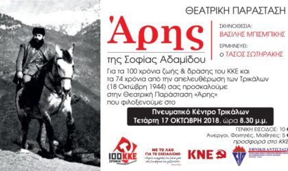 Αύριο στα Τρίκαλα η Θεατρική Παράστατη «Άρης»