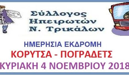 Ημερήσια εκδρομή στην Κορυτσά διοργανώνει ο Σύλλογος Ηπειρωτών Ν. Τρικάλων την Κυριακή 4 Νοεμβρίου. Το πρόγραμμα της εκδήλωσης έχει ως...