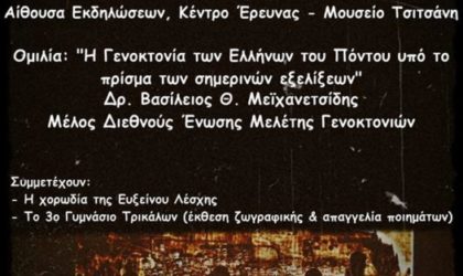 Η Εύξεινος Λέσχη Ποντίων και Μικρασιατών Ν. Τρικάλων, αποτίνοντας φόρο τιμής στη Μνήμη των 353.000 νεκρών, πραγματοποιεί την κεντρική της...