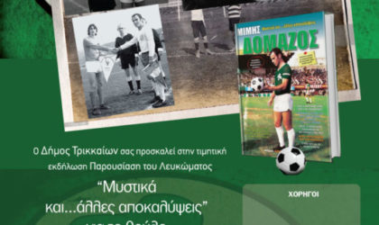 Ο Δήμος Τρικκαίων και η εκδοτική εταιρεία WELCOME έχουν τη χαρά να τιμήσουν τον μεγάλο Ελληνα ποδοσφαιριστή Μίμη Δομάζο. Τη...