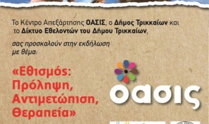 Μια ακόμη προσπάθεια του Δήμου Τρικκαίων να συμβάλλει στην αντιμετώπιση των εθισμών. Την ερχόμενη Κυριακή 3 Δεκεμβρίου 2018, σε συνεργασία...