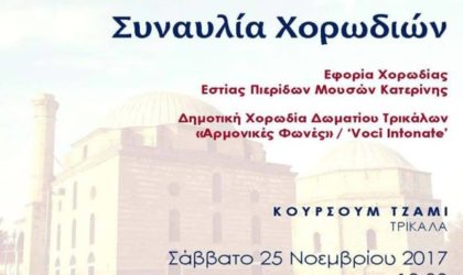 Η Δημοτική Χορωδία Τρικάλων του Τμήματος Πολιτισμού – Αθλητισμού της Δ/νσης Παιδείας – Πολιτισμού του Δήμου Τρικκαίων διοργανώνει «Συναυλία Χορωδιών»...