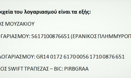Τραπεζικό λογαριασμό «Βοήθειας και Αλληλεγγύης» άνοιξε ο Δήμος Μουζακίου στην Τράπεζα Πειραιώς, προκειμένου να εξασφαλίσει πόρους για την αντιμετώπιση των...