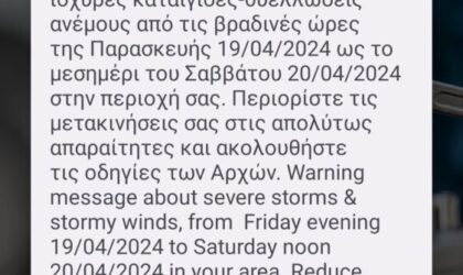 Μνήμες Daniel έφερε το μήνυμα του Υπουργείου Κλιματικής Κρίσης και Πολιτικής Προστασίας που στάλθηκε στα κινητά εντός της εμβέλειας των...
