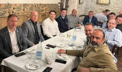 Στην ταβέρνα «Το Χάνι» πλαισιωμένος από τον αστυνομικό διευθυντή Δημήτρη Μήτραινα και τον διοικητή της Τροχαίας Κωνσταντίνο Κωστακόπουλο, έφαγε χθες...