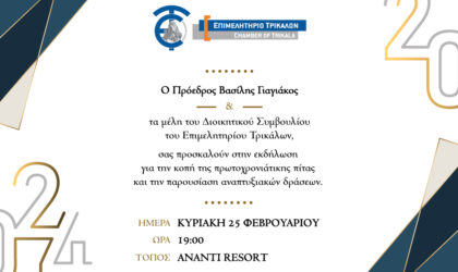 Ανοιχτή πρόσκληση του Επιμελητηρίου Τρικάλων για την εκδήλωση κοπής της πρωτοχρονιάτικης πίτας