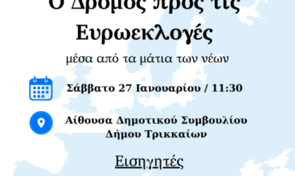 Ενημερωτική εκδήλωση για τις Ευρωεκλογές «μέσα από τα μάτια των νέων» στο Δημαρχείο Τρικκαίων