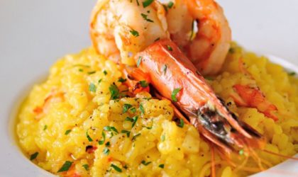 Εύκολο ριζότο μιλανέζε με σαφράν, γαρίδες και μοναδικά αρώματα. Φτιάξτε το όλοι! Υλικά Συνταγής 350 γραμ. γαρίδες 2 κ.σ ελαιόλαδο...