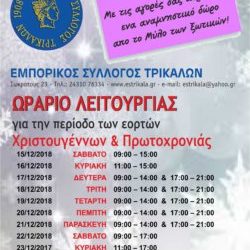 Έκθεση από τον Σύλλογο Τρικαλινών Ζωγράφων Χριστουγεννιάτικα στολίδια και χειροτεχνίες, μικρά έργα ζωγραφικής, κοσμήματα, εικαστικές κατασκευές και είδη διακόσμησης. Αυτά...