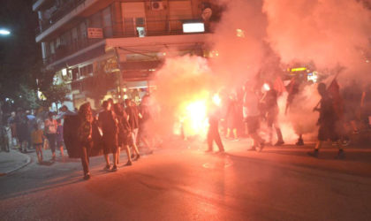 Με συνθήματα κατά του φασισμού, του ναζισμού και του ρατσισμού, αλλά και με βεγγαλικά στο ύψος της Ασκληπιού που ήταν...