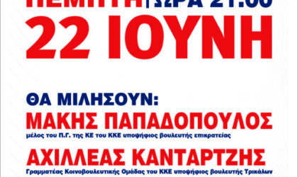 Πρόγραμμα υποψηφίων βουλευτών του ΚΚΕ στα Τρίκαλα για τη Δευτέρα 19 Ιούνη Στις 10πμ στα Τρίκαλα, ο Γιώργος Καΐκης θα...