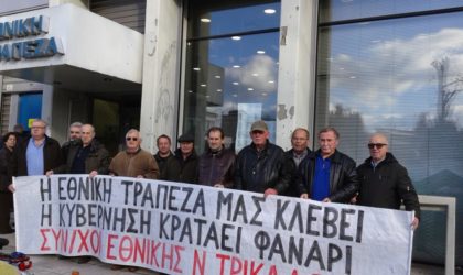 Διαμαρτυρία συνταξιούχων στην Εθνική Τράπεζα Τρικάλων