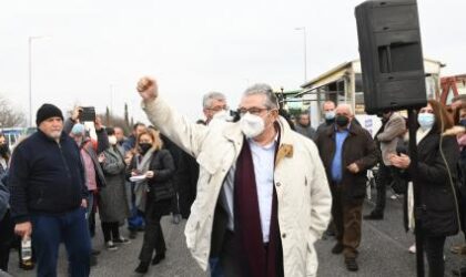 Επίσκεψη του Δημήτρη Κουτσούμπα στο μπλόκο των αγροτών