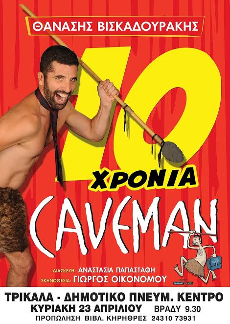Η επιτυχία CAVEMAN επιστρέφει στο Πνευματικό Κέντρο Δήμου Τρικκαίων την Κυριακή 23Απριλίου στις 21.30. Στον ρόλο του Caveman, σ΄ έναν από τους πιο επιτυχημένους θεατρικούς ρόλους των τελευταίων δεκαετιών ο Θανάσης Βισκαδουράκης!