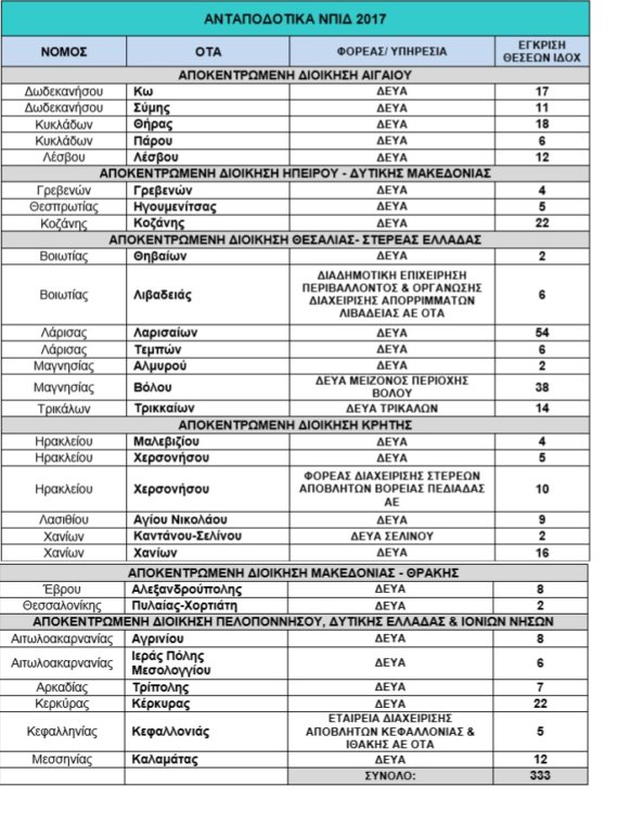 Συγκεκριμένα εγκρίθηκε η σύναψη τριακοσίων τριάντα τριών (333) συμβάσεων με σχέση εργασίας ιδιωτικού δικαίου ορισμένου χρόνου σε υπηρεσίες ανταποδοτικού χαρακτήρα σε ΝΠΙΔ, για χρονικό διάστημα έως οκτώ (8) μήνες, σύμφωνα με τον πίνακα που ακολουθεί: