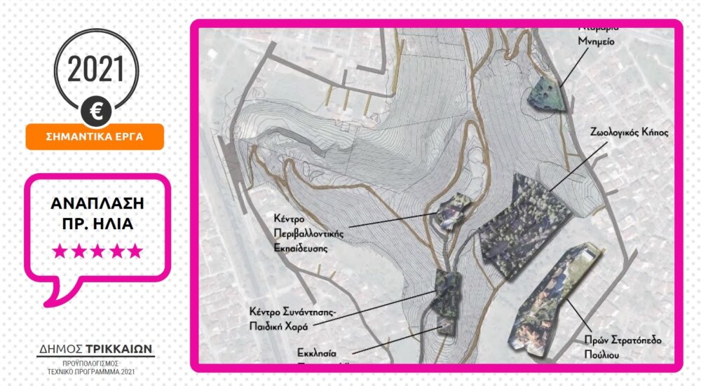 - α) Ανάπλαση Λόφου Προφήτη Ηλία και β) Δημιουργία Διαδραστικού χώρου Τεχνολογίας στην Πρώην ΤΑΞΥΠ Τρικάλων: 6.200.000 €