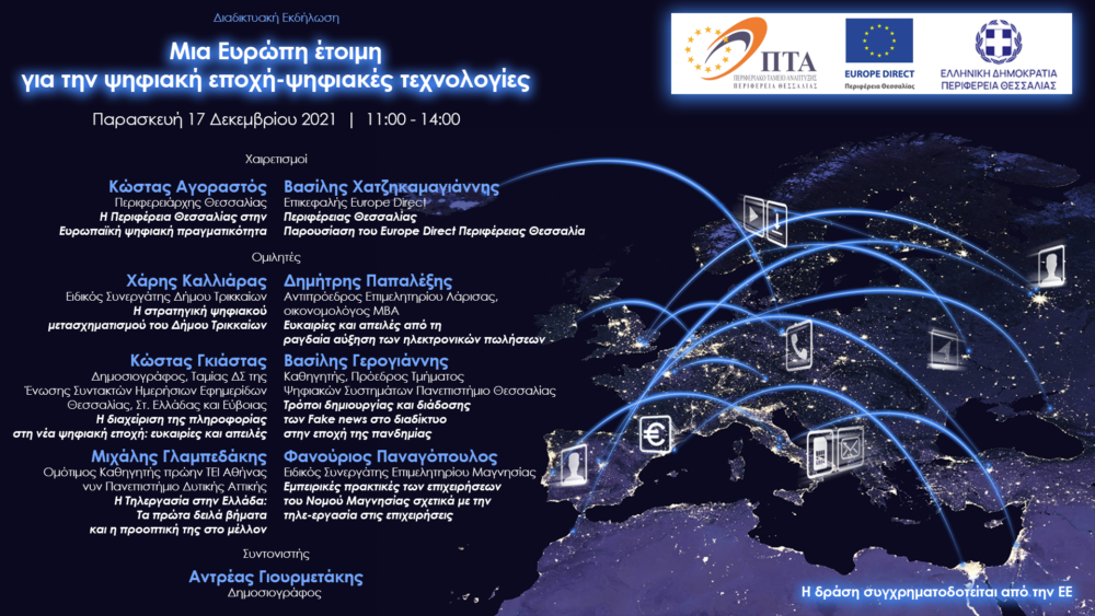 Διαδικτυακή εκδήλωση: «Ευρώπη έτοιμη για την ψηφιακή εποχή-ψηφιακές τεχνολογίες»