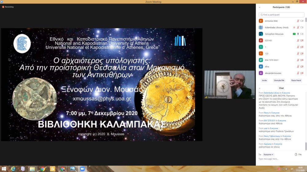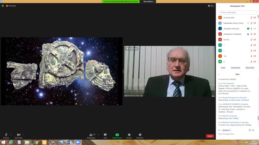 Άκρως ενδιαφέρουσα και εποικοδομητική ήταν η διαδικτυακή εκδήλωση που πραγματοποιήθηκε την Δευτέρα 7 Δεκεμβρίου με καλεσμένο τον κ. Ξενοφώντα Μουσά, καθηγητή Φυσικής Διαστήματος του ΕΚΠΑ, και θέμα τον περίφημο Μηχανισμό των Αντικυθήρων.