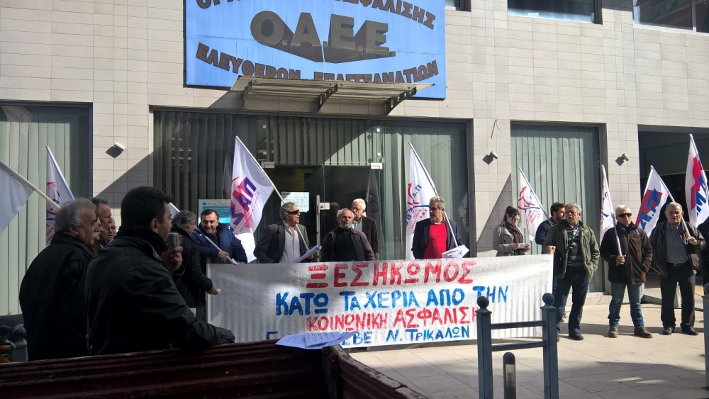 Με βασικότερα αιτήματα την απόσυρση του νέου αντιασφαλιστικού νομοσχεδίου και να μην σημειωθεί καμία μείωση στις συντάξεις σήμερα το πρωί, οι Τρικαλινοί αυτοαπασχολούμενοι πραγματοποίησαν παράσταση διαμαρτυρίας στο τοπικό υποκατάστημα του ΟΑΕΕ.