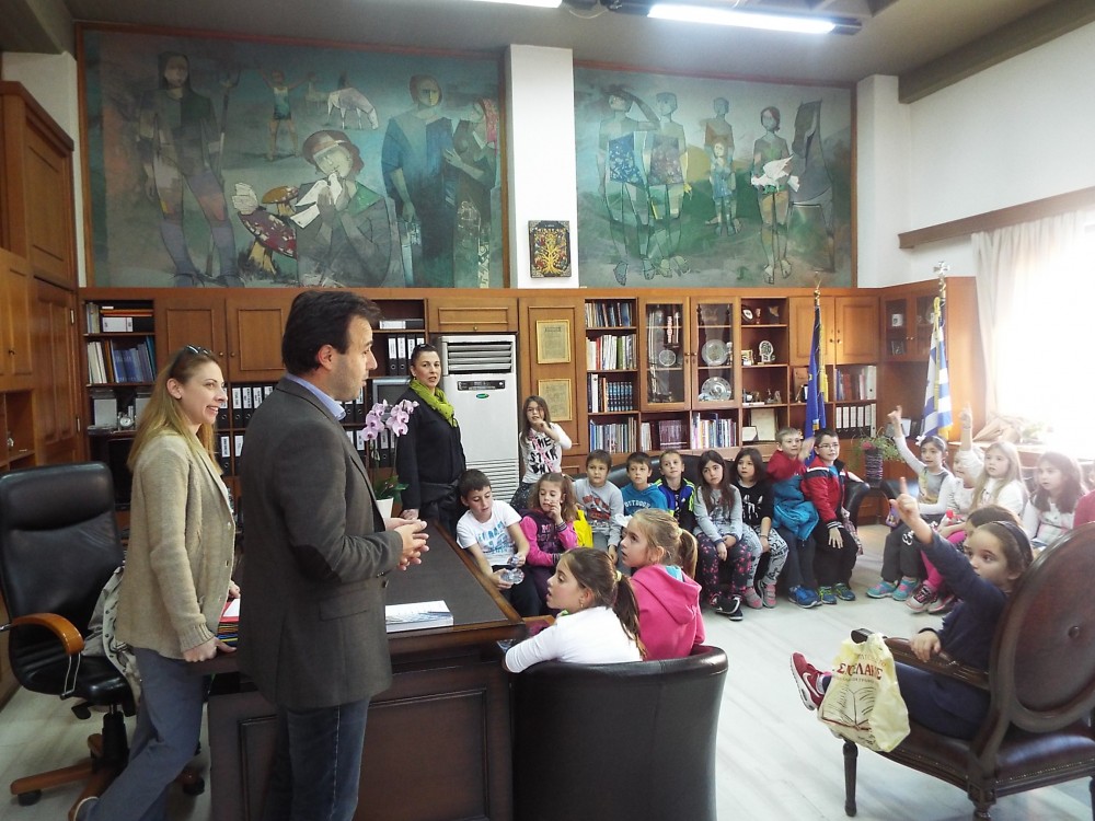 Αιτήματα διαφορετικά, αιτήματα σοβαρά! Οι μελλοντικοί ενεργοί πολίτες του Δήμου Τρικκαίων, μαθητές από τη Γ΄ Τάξη του 5ου Δημοτικού Σχολείου Τρικάλων, σήμερα το πρωί επισκέφτηκαν το Δημαρχείο. Και έθεσαν στον Δήμαρχο τα αιτήματά τους, για το σχολείο και την πόλη. Μπορεί να έμαθαν για τη λειτουργία του Δημοτικού Συμβουλίου, του Δήμου και των υπηρεσιών του, στο πλαίσιο ανάλογου μαθήματος, αλλά έδειξαν ότι έχουν και άποψη και λόγο για όλα όσα συμβαίνουν γύρω τους. Ο κ. Παπαστεργίου απαντούσε και η αντιδήμαρχος Παιδείας κ. Βασιλένα Μητσιάδη, σημείωνε τα αιτήματα των μικρών συμπολιτών μας, διότι, για τα μικρά παιδιά είναι σημαντικό, να γνωρίζου ότι θα ζουν σε ένα μέλλον προσαρμοσμένο στις ανάγκες τους.