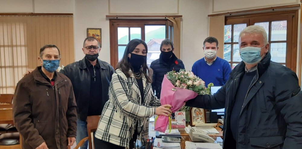 Ο Δήμαρχος αφού συνεχάρη την Ευθυμία για την επιτυχία της και την πρωτιά σε επίπεδο Νομού στην Ιατρική Σχολή, της ευχήθηκε καλή σταδιοδρομία, πρόοδο και επιτυχίες στη ζωή της και της συνέστησε να συνεχίσει τη σωστή και μεθοδευμένη μελέτη πάνω στο αντικείμενο της έτσι ώστε να επιτύχει τους στόχους που έχει θέσει και ταυτόχρονα να κάνει περήφανη την οικογένειά της δίνοντας το καλό παράδειγμα προς τις επόμενες γενιές μαθητών – σπουδαστών.