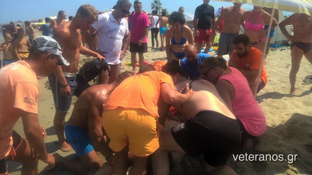 Με Διαταγή του Διοικητού των ΚΑΑΥ Λοχαγού ( ΠΒ) Λέφα Γρηγορίου το Ασθενοφόρο του Στρατοπέδου παρέλαβε τον λουόμενο με την σύζυγό του και με συνοδεία Ιατρού τον διακόμισαν στο Κέντρο Υγείας Λιτοχώρου στα Επείγοντα !