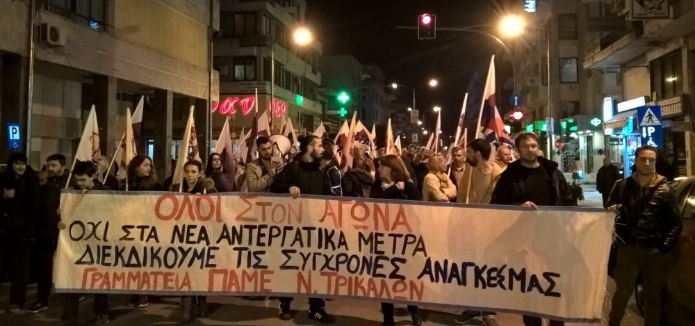 Δυναμικό συλλαλητήριο ενάντια σε παλιά και νέα μέτρα ,που ήδη ξεδιπλώνονται με τα προαπαιτούμενα της 3ης «αξιολόγησης», διοργάνωσαν τα ταξικά σωματεία στα Τρίκαλα μετά από κάλεσμα του ΠΑΜΕ