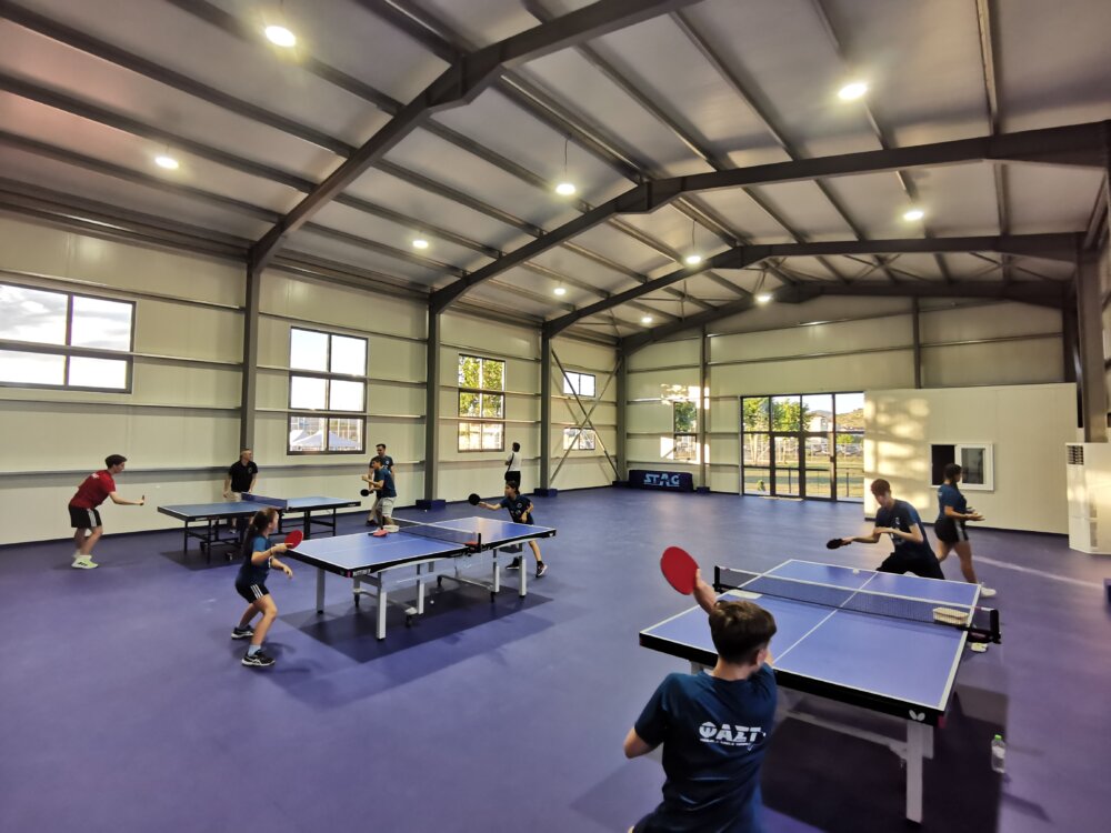 Ακολούθησε η κοπή της καθιερωμένης κορδέλας, μικρή ξενάγηση στον χώρο και ειδικά στο κλειστό γυμναστήριο, όπου έπαιζαν πινγκ πονγκ, παιδιά – μέλη του “Φιλόδοξου” Αθλητικού Συλλόγου Τρικάλων  (ΦΑΣΤ). Στο μεσοδιάστημα υπήρξε επίδειξη cheerleading από τις αθλήτριες Ασημίνα Κουβελέτσου και Δήμητρα Ντόκα, πρωταθλήτριες Ελλάδας το 2023, με συμμετοχή – σε λίγες ημέρες – στους πανευρωπαϊκούς αγώνες.