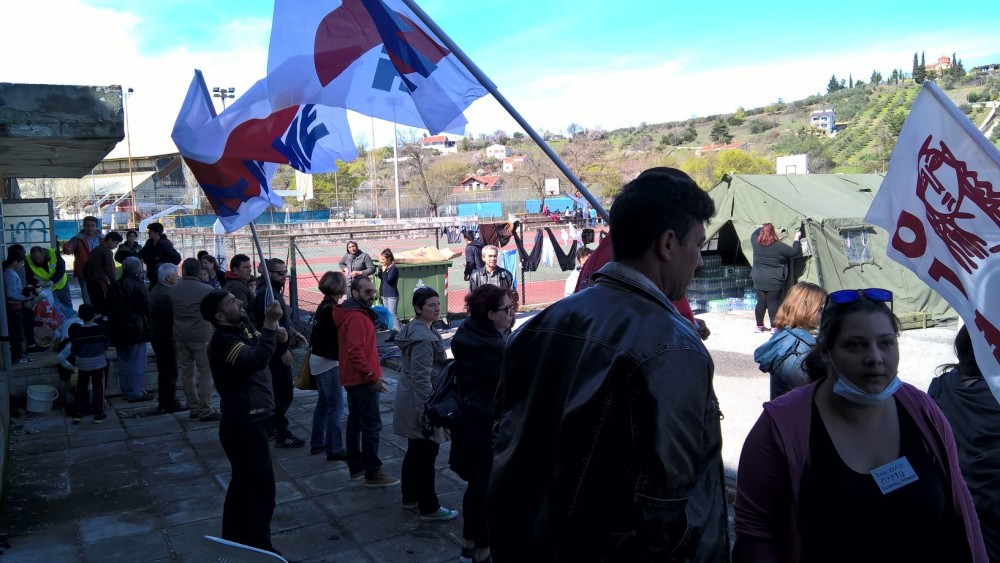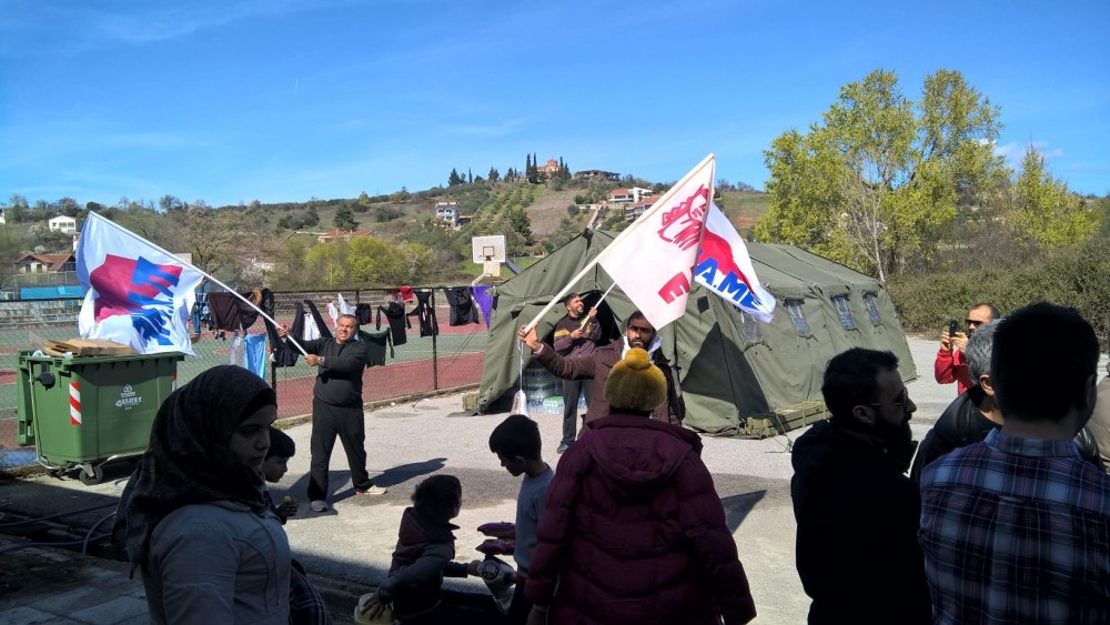 «Δυναμώνουμε την πάλης μας, αντιστεκομάστε. Εκφράζουμε την αλληλεγγύη μας στους λαούς που υποφέρουν. Στους πρόσφυγες και τους μετανάστες που κυνηγημένοι από την απελπισία και το θάνατο αναζητούν ειρηνικό καταφύγιο.