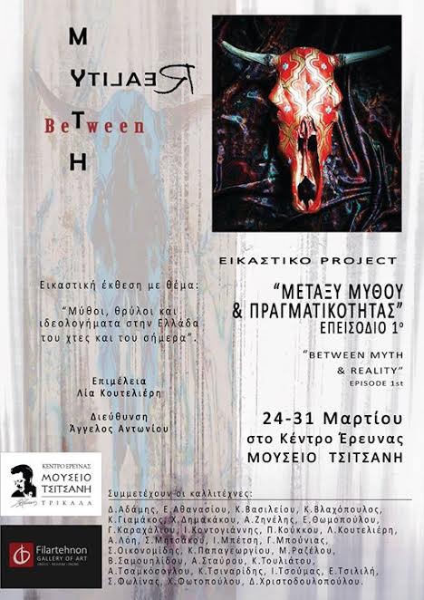 Η έκθεση με θέμα: «Μεταξύ μύθου και πραγματικότητας», θα πραγματοποιηθεί από 24 έως 31 Μαρτίου του 2017 στο Μουσείο Βασίλη Τσιτσάνη, που στεγάζεται στις παλιές φυλακές Τρικάλων. Οι συμμετέχοντες καλλιτέχνες έχουν δημιουργήσει έργα που κινούνται στο μεταίχμιο, μεταξύ πραγματικού και φανταστικού. Κάθε εικαστικό μέσο: φωτογραφία, γλυπτική, ζωγραφική, χαρακτική, Multimedia, είναι παρόν εδώ στην δημιουργία ενός υπερρεαλιστικού κολλάζ.