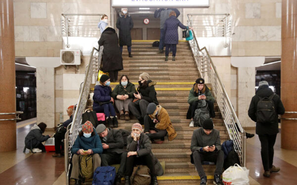 Στο μετρό του Κιέβου υπήρχαν δεκάδες κάτοικοι που πήγαν εκεί είτε για να προστατευθούν είτε για να επιβιβαστούν σε κάποιο τρένο, με βαλίτσες και σάκους στα χέρια, για να φύγουν από την πόλη.