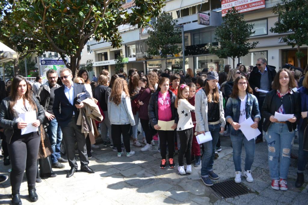 Πλημμύρισε ευαισθησία και ποίηση σήμερα το μεσημέρι το προαύλιο του δημαρχείου όπου η Διεύθυνση Δ/θμιας Εκπ/σης Τρικάλων σε συνεργασία με τη Διεύθυνση Π/θμιας Εκπ/σης , διοργάνωσαν, εκδήλωση με θέμα «Πες το μ’ ένα ποίημα», στο πλαίσιο του εορτασμού της Παγκόσμιας Ημέρας Ποίησης και Διεθνούς Ημέρας για την εξάλειψη των φυλετικών διακρίσεων και του ρατσισμού.