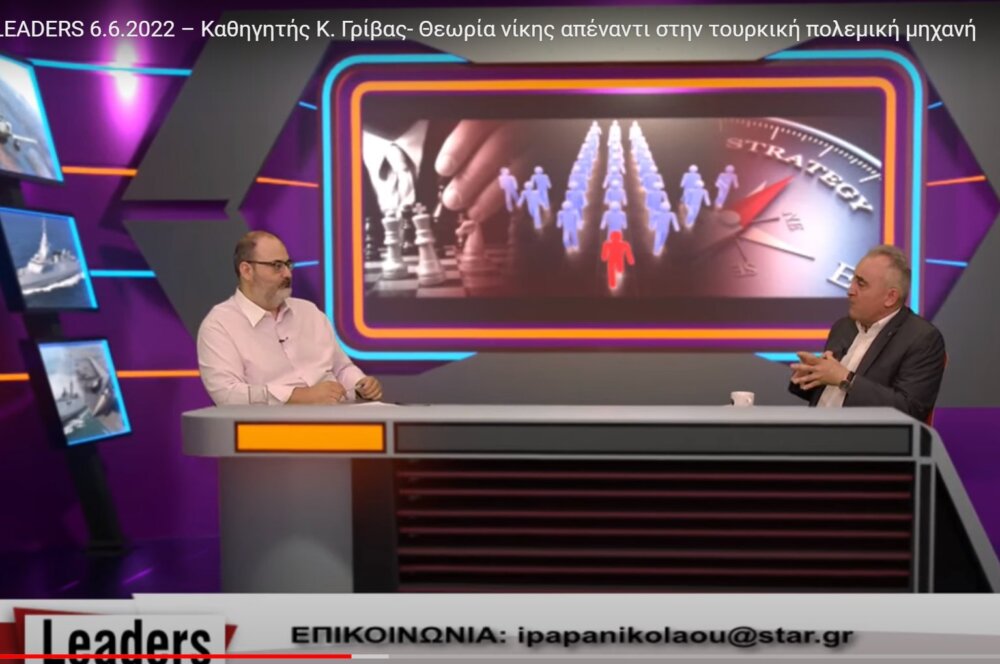 Στην εκπομπή LEADERS στις 6.6.2022 με τον Ηλία Παπανικολάου, ο Καθηγητής Γεωπολιτικής στη Στρατιωτική Σχολή Ευελπίδων Κώστας Γρίβας αναλύει το ρόλο που παίζει η ισχύς πυρός στο σύγχρονο πεδίο μάχης, την αναντίρρητη ελληνική κυριαρχία στο Αιγαίο, γιατί η Τουρκία είναι εκείνη που θα πρέπει να φοβάται ένα θερμό επεισόδιο με τη χώρα μας καθώς και τα νέα δεδομένα με τα μαχητικά Rafale στις σχέσεις μας με τους γείτονες.