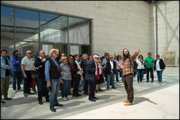 Κατόπιν, ακολούθησε επίσκεψη στο «Πολυκεντρικό Μουσείο Αιγών», στο οποίο οι συμμετέχοντες περιηγήθηκαν στις εκθεσιακές ενότητες α) στο Αίθριο του Ανακτόρου, όπου έχει γίνει ανάταξη τμήματος του 2ου ορόφου της πρόσοψής του, β) στο Αίθριο των Γλυπτών, όπου εκτίθενται γλυπτά από τις ανασκαφές στην πόλη και τη νεκρόπολη των Αιγών, γ) στην κύρια έκθεσή του, με τίτλο «Αιγών Μνήμη», όπου μέσα από τα ευρήματα επιχειρείται η αφήγηση της ιστορίας των Μακεδόνων και η ανάκτηση της χαμένης μνήμης της αρχαίας πόλης και δ) στην περιοδική έκθεση «Οικουμένης Αντίδωρον», που προσεγγίζει το φαινόμενο της Ελληνιστικής Οικουμένης, μέσα από τις μορφές, όπως αυτές απεικονίζονται στα νομίσματα.