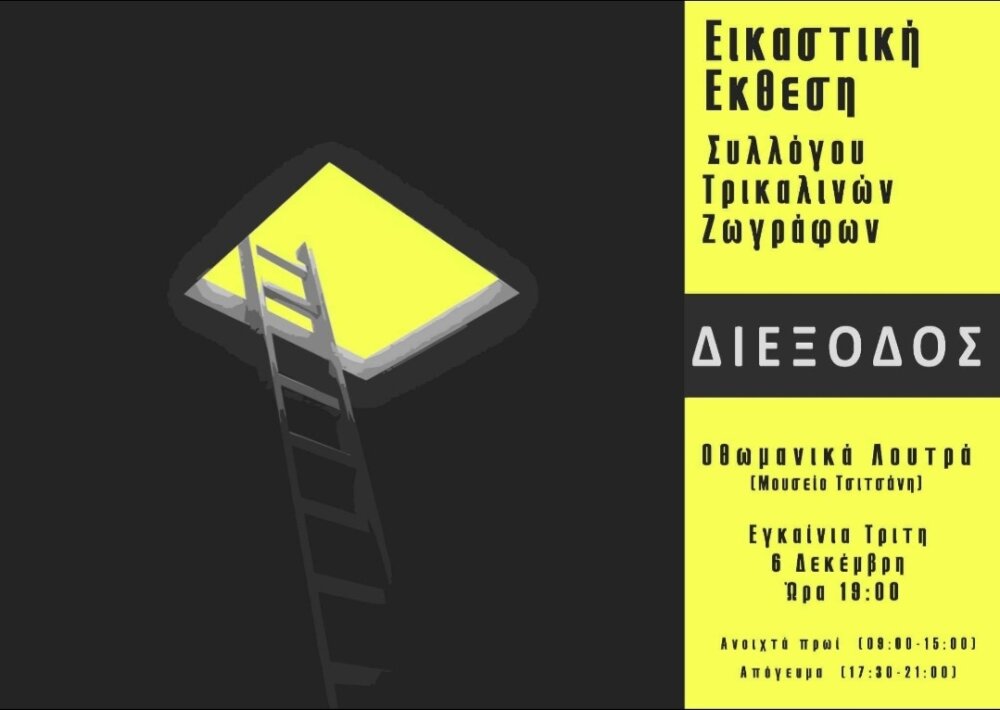 Την Τρίτη 6 Δεκεμβρίου στις 19: 00, στο δίδυμο Οθωμανικό λουτρό, θα πραγματοποιηθούν τα εγκαίνια της εικαστικής έκθεσης του Συλλόγου Τρικαλινών Ζωγράφων.