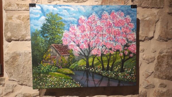 Μπορεί μέχρι και πριν δυο χρόνια να μην είχε πιάσει πινέλο ξανά στα χέρια της, παρά μόνο για να βάψει κάποια πράγματα στο σπίτι της, όμως μέσα στα χρόνια της καραντίνας ο εγκλεισμός της, παρότι ζει σε χωριό, έβγαλε από μέσα της την ζωγράφο που είχε βαθιά κρυμμένη για δεκαετίες τώρα.
