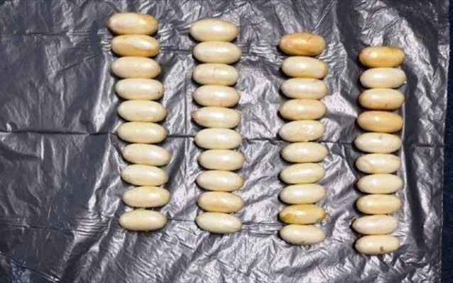 Όπως προέκυψε, μετέφερε, με τη μέθοδο της κατάποσης, 960 γραμμάρια κοκαΐνης σε 87 αυτοσχέδιες συσκευασίες, οι οποίες και κατασχέθηκαν, όπως και 550 ευρώ κι ένα κινητό τηλέφωνο.