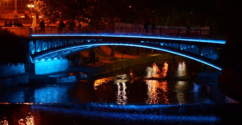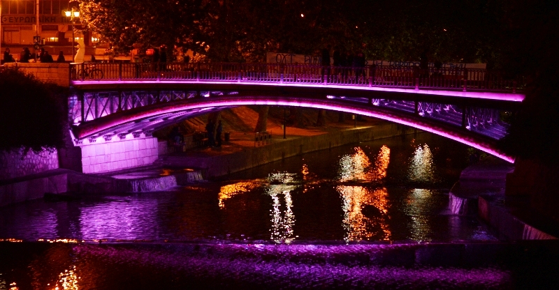 «Ελαβε φως» η κεντρική πεζογέφυρα των Τρικάλων, μην περιμένοντας το Μ. Σάββατο! Από το βράδυ της Μ. Τετάρτης, ο πολυαναμενόμενος φωτισμός του ιστορικού αυτού μνημείου έγινε πραγματικότητα, αφού ολοκληρώθηκαν οι σχετικές εργασίες ,που διήρκεσαν αρκετές ημέρες. Ο συμπολίτης σχεδιαστής φωτισμών κ. Βασίλης Κλωτσοτήρας ανέλαβε τη σχετική μελέτη και υλοποίηση του έργου, με το αποτέλεσμα να είναι εκθαμβωτικό. Χρωματισμοί από λάμπες ειδικά κατασκευασμένες για τα Τρίκαλα από την Κίνα, τοποθετήθηκαν κάτω και γύρω από τη γέφυρα. Ανά διαστήματα η γέφυρα αλλάζει φωτισμό, προσδίδοντας ένα πολύ διαφορετικό χρώμα στην πόλη και στο πλέον κεντρικό της σημείο. Ο φωτισμός εναλλάσσεται, οι οπτικές μεταμορφώσεις τής ανακατασκευασμένης από τον χειμώνα γέφυρας (ως δωρεά των αδελφών Σαράντη) πυκνώνουν και εξελίσσουν την παρέμβαση.