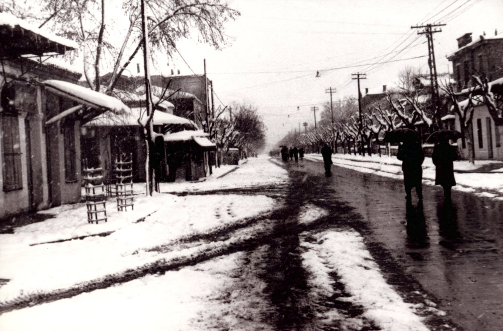 Κάποιοι τολμηροί προσπαθούσαν να κάνουν μερικές βόλτες πάνω κάτω μέσα στο κρύο μέχρι να κρυφτούν στα γύρω καφενεία και ζαχαροπλαστεία. Στο καφέ- ζαχαροπλαστείο “το Διεθνές” λίγα μέτρα πιο κάτω, κλειστό σήμερα, μπαινόβγαινε συνέχεια κόσμος.