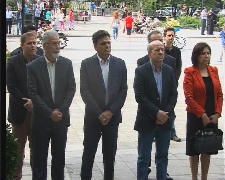 Παραβρέθηκαν ο βουλευτής του ΣΥΡΙΖΑ κ. Χρίστος Σιμορέλης, ο Θεματικός Αντιπεριφερειάρχης κ. Γεώργιος Τσίγκας, ο Περιφερειακός Σύμβουλος κ. Χρίστος Γακόπουλος, οι Αντιδήμαρχοι κ.κ. Χρυσάνθη Γάλλου-Δαλκαφούκη και Αλέκος Πολυμερόπουλος, ο Διοικητής της Αστυνομικής Διεύθυνσης Τρικάλων, ο Διοικητής της ΣΜΥ καθώς και άλλοι επίσημοι, ενώ ένταση επικράτησε μεταξύ εκπροσώπων του ΣΥΡΙΖΑ και του βουλευτού Χρίστου Σιμορέλη με τους διοργανωτές της εκδήλωσης. Οι πρώτοι διαμαρτυρήθηκαν ότι οι διοργανωτές σκόπιμα δεν εκφώνησαν την κατάθεση στεφάνου εκ μέρους του ΣΥΡΙΖΑ, ενώ δοθέντων των ανάλογων εξηγήσεων και από τις δύο πλευρές, το επεισόδιο σταμάτησε εκεί.