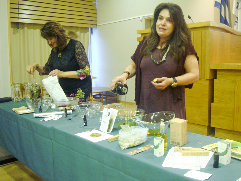 Προς το τέλος της εκπαιδευτικής ημερίδας, οι εισηγήτριες δίνοντας απαντήσεις σε ερωτήματα του ακροατηρίου, ετοίμαζαν ρόφημα με ελληνικά ΑΦΦ και ελαιόλαδο με αιθέρια έλαια ΑΦΦ, τα οποία διέθεσαν στο κοινό προς γευσιγνωσία.