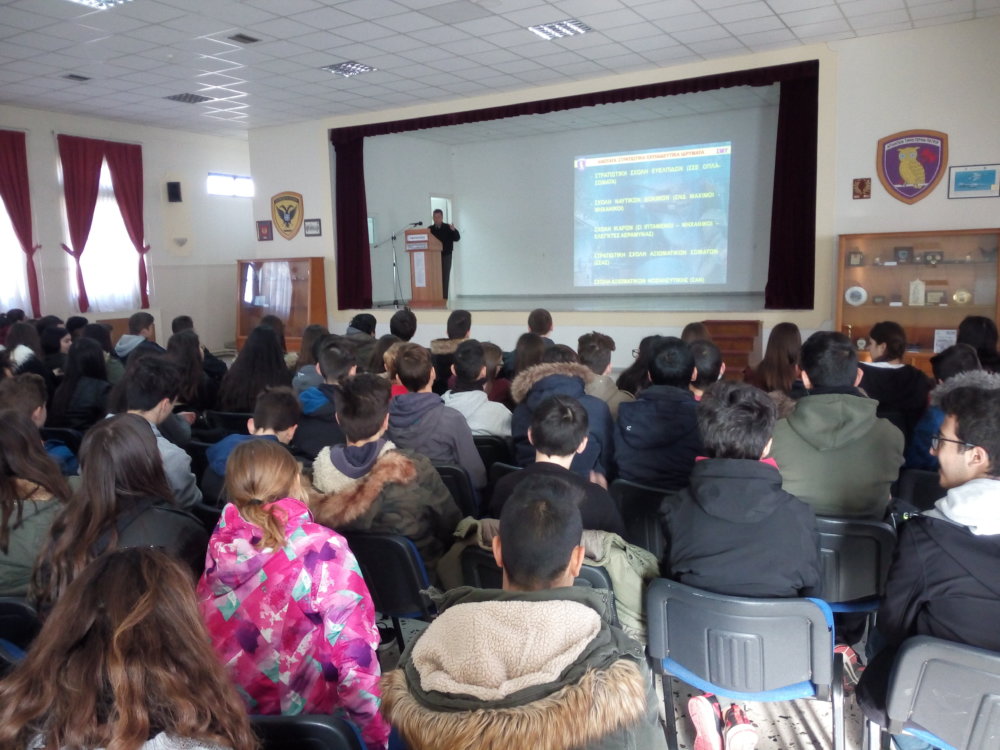 Την Πέμπτη στις 7/12/2017, οι μαθητές της Γ΄ Τάξης με συνοδούς εκπαιδευτικούς τους κ. Κοντοκλώτση, κ. Τζιοβάρα, κ. Παπαευθυμίου, κ. Γκούτσια και κ. Μπαρμπαρούση επισκεφτήκαμε τους χώρους της σχολής. Εκεί μας υποδέχθηκαν και μας ενημέρωσαν για τη λειτουργία της σχολής, το πρόγραμμα σπουδών, την διαδικασία εισαγωγής στις στρατιωτικές σχολές και την διαβίωση των σπουδαστών. Επίσης, ξεναγηθήκαμε στο νεοϊδρυθέν στρατιωτικό μουσείο που βρίσκεται στις εγκαταστάσεις της σχολής. Εντυπωσιαστήκαμε ακούγοντας για τη μάχη του υψώματος 731 καθώς και με τα βίντεο που έδειχναν την εκπαίδευση των υπαξιωματικών.