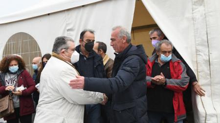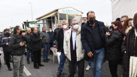 Ο ΓΓ της ΚΕ του ΚΚΕ, Δημήτρης Κουτσούμπας, μετά τη επίσκεψη του στο μπλόκο των αγροτών του Αη Γιάννη της Λειβαδιάς και της Πελασγίας στη Φθιώτιδα επισκέφτηκε το μπλόκο των αγροτών στη Νίκαια της Λάρισας, όπου συναντήθηκε με εκπροσώπους της Συντονιστικής Επιτροπής του Μπλόκου της Νίκαιας και εκπροσώπους των υπόλοιπων μπλόκων της Θεσσαλίας, της Αγιάς, της Ελασσόνας, του Τυρνάβου και του Ριζόμυλου. Τον Δημήτρη Κουτσούμπα υποδέχθηκε ο Κώστας Τζέλλας, πρόεδρος της Ενωτικής Ομοσπονδίας Αγροτικών Συλλόγων Καρδίτσας, ο οποίος ευχαρίστησε τον ΓΓ της ΚΕ του Κόμματος για την άμεση ανταπόκριση του ΚΚΕ στην πρόσκληση των αγροτών και τον ενημέρωσε για τα αιτήματα τους.