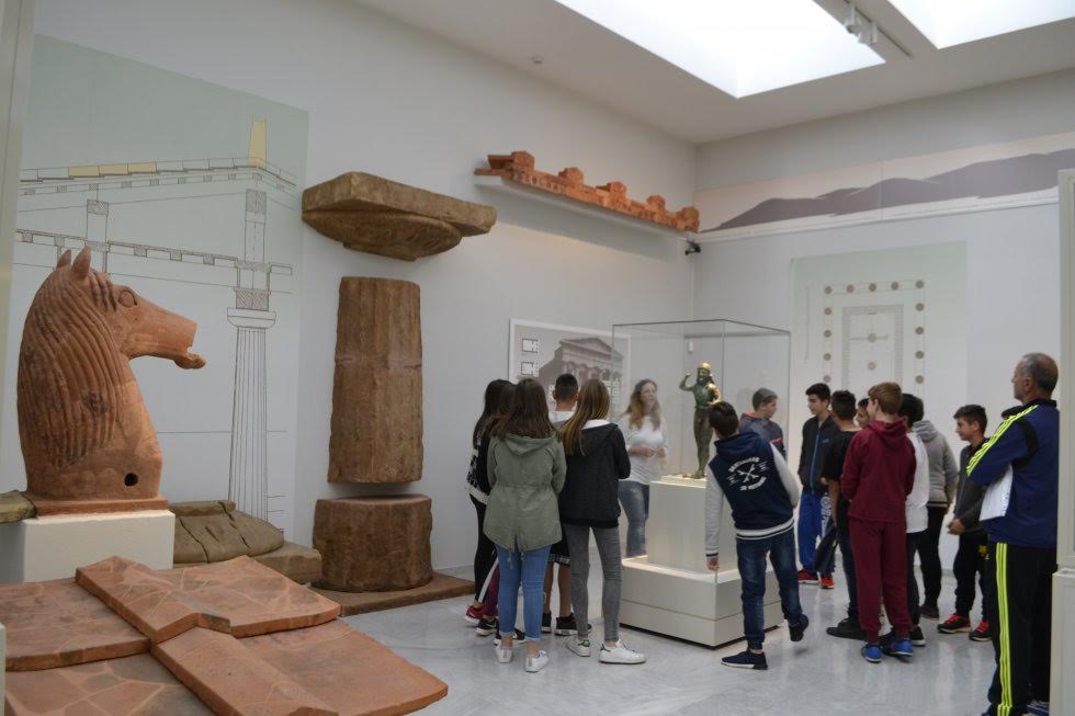 Οι μαθητές ξεναγήθηκαν στα εκθέματα από την κα Θεογιάννη Λευκή, αρχαιολόγο της ΛΔ΄ Εφορίας Προϊστορικών και Κλασικών Αρχαιοτήτων, η οποία με παραστατικό και βιωματικό τρόπο τους μύησε στο αρχαιολογικό παρελθόν του τόπου μας. Τα παιδιά συμμετείχαν ενεργά στην ξενάγηση με τις παρατηρήσεις και τις ερωτήσεις τους και ενθουσιάστηκαν από τα πλούσια ευρήματα της προϊστορικής περιόδου, αλλά και από τα ενδιαφέροντα θρησκευτικά μνημεία των ιστορικών χρόνων, όπως τον αρχαϊκό ναό του Απόλλωνα στη Μητρόπολη και το Ομοσπονδιακό Θεσσαλικό Ιερό της Ιτωνίας Αθηνάς.