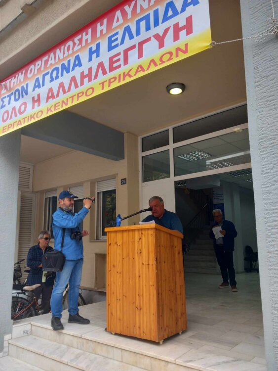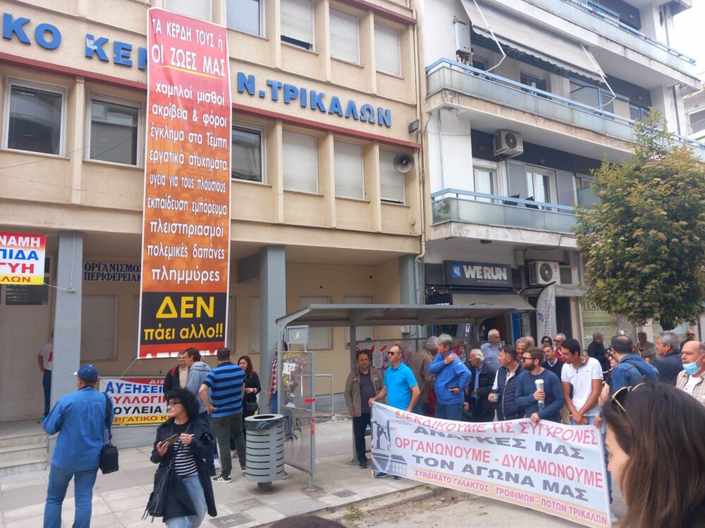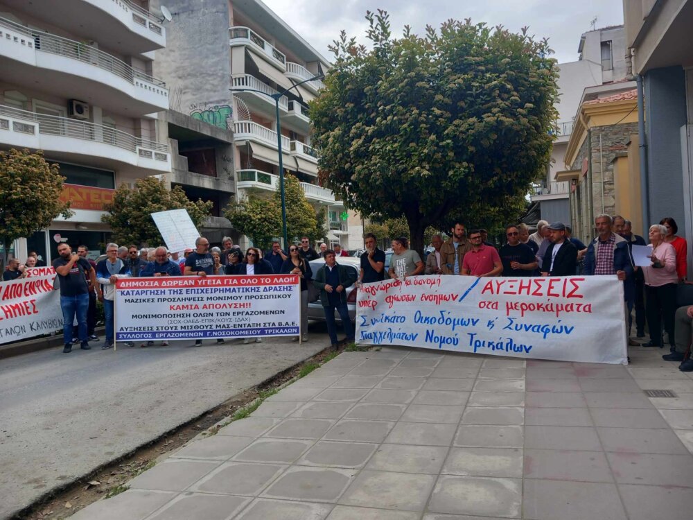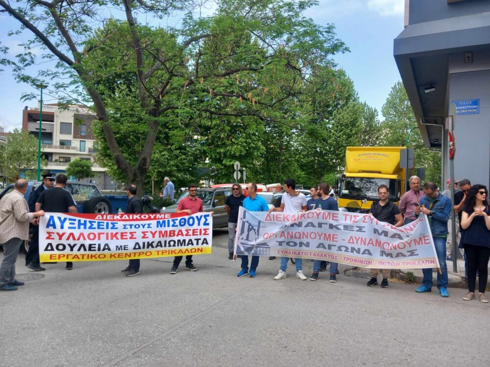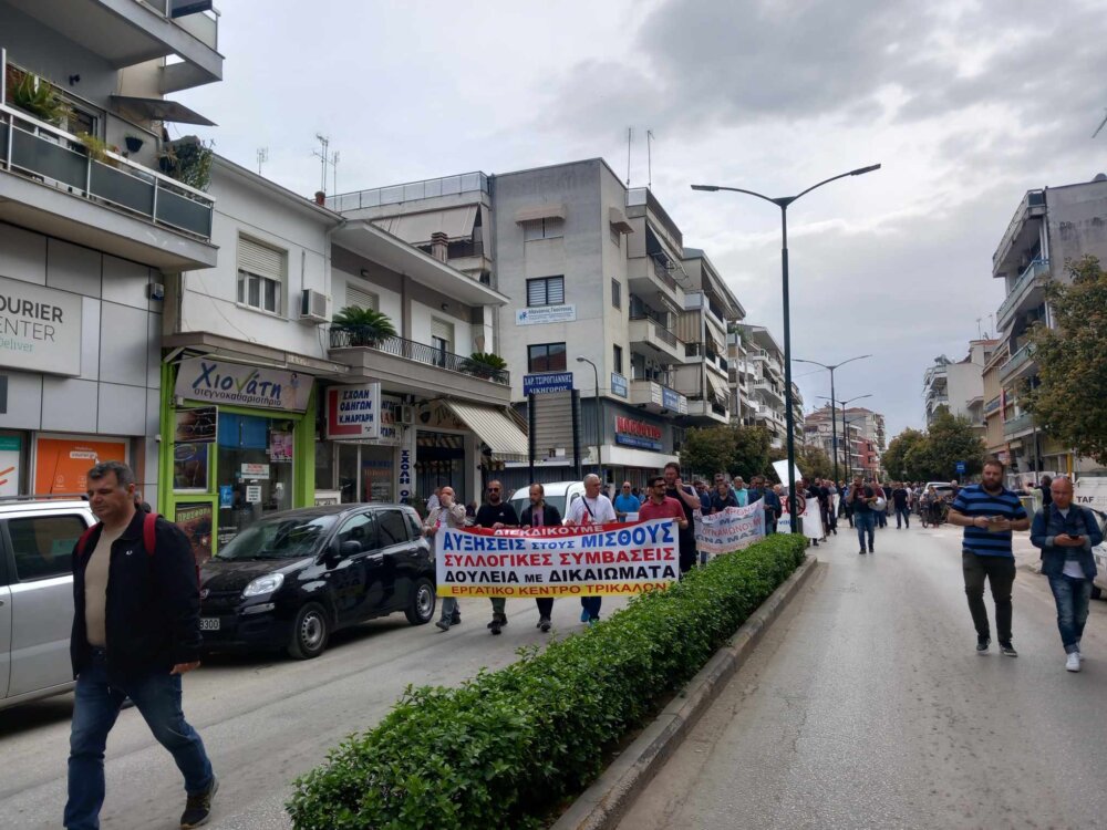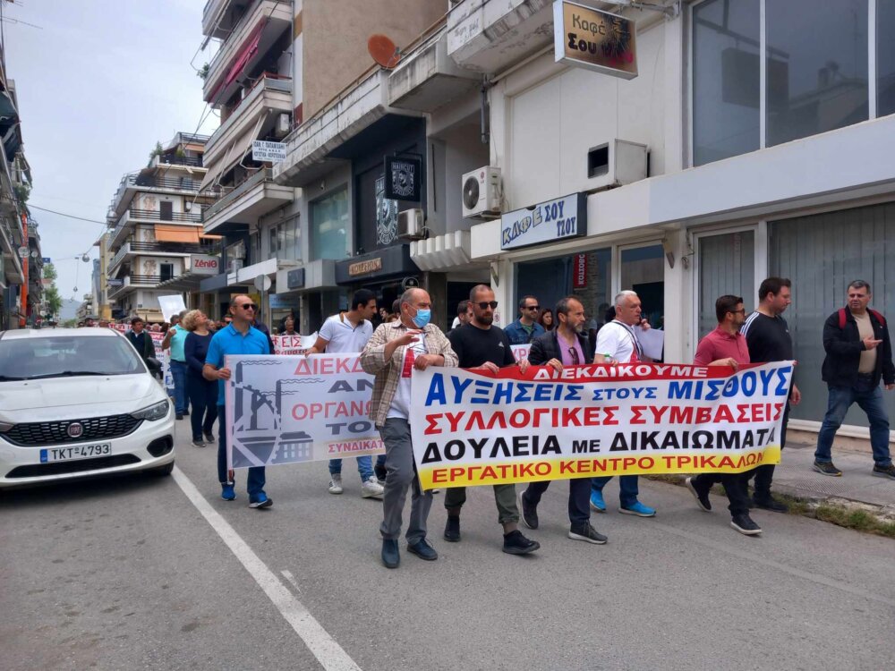 Για πρώτη φορά μετά από πολλά χρόνια, με αφορμή την Πανεργατική Απεργία σήμερα 17 Απριλίου, πραγματοποιήθηκε απεργιακή κινητοποίηση η οποία ξεκίνησε με συγκέντρωση έξω από το Εργατοϋπαλληλικό Κέντρο Τρικάλων και συνεχίστηκε με πορεία στο κέντρο των Τρικάλων μέχρι και το κτίριο της Εφορίας.