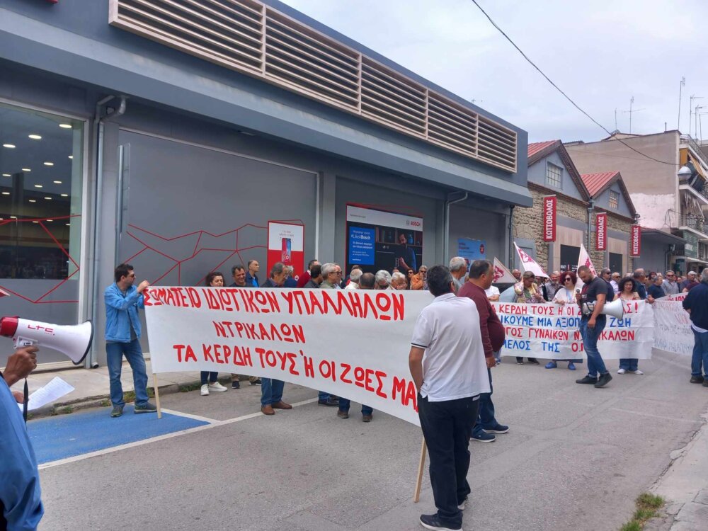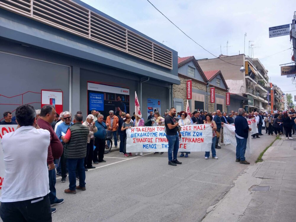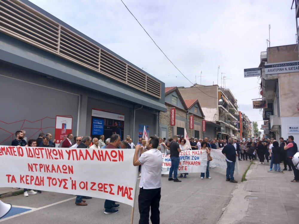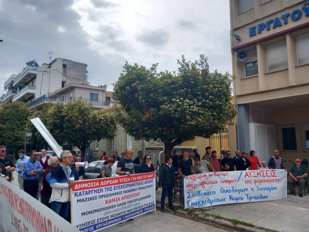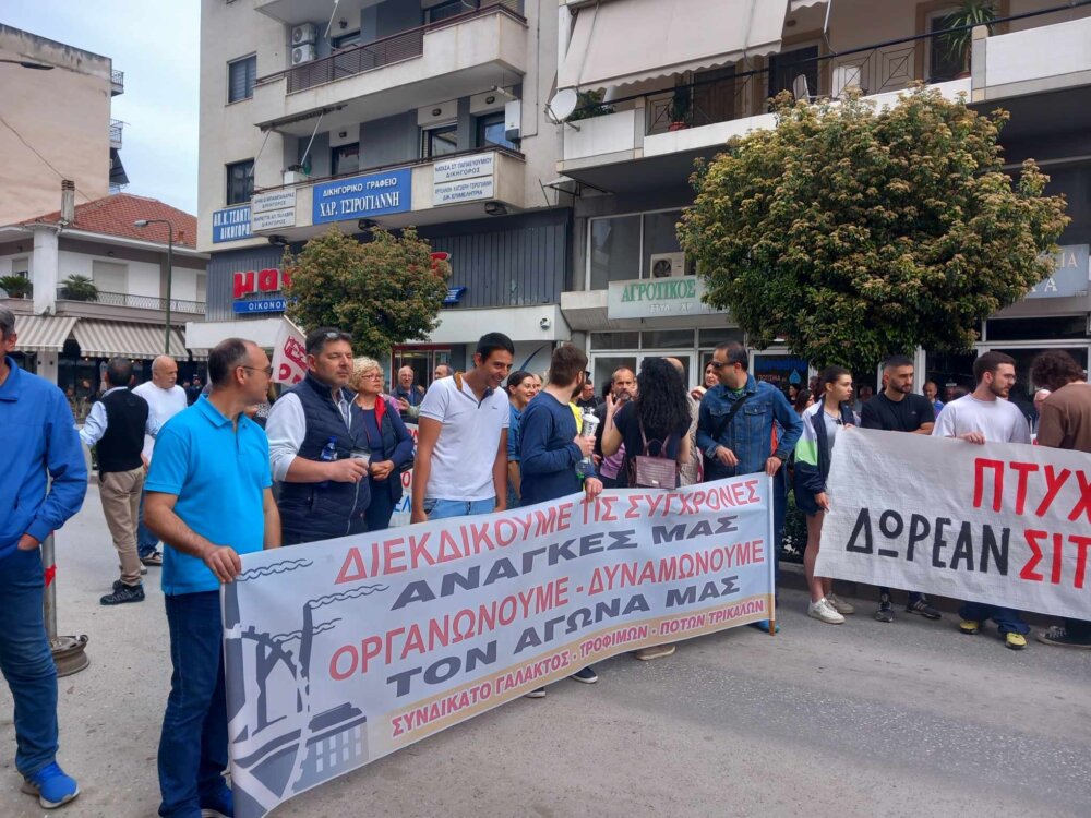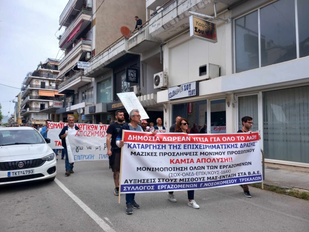 Για πρώτη φορά μετά από πολλά χρόνια, με αφορμή την Πανεργατική Απεργία σήμερα 17 Απριλίου, πραγματοποιήθηκε απεργιακή κινητοποίηση η οποία ξεκίνησε με συγκέντρωση έξω από το Εργατοϋπαλληλικό Κέντρο Τρικάλων και συνεχίστηκε με πορεία στο κέντρο των Τρικάλων μέχρι και το κτίριο της Εφορίας.