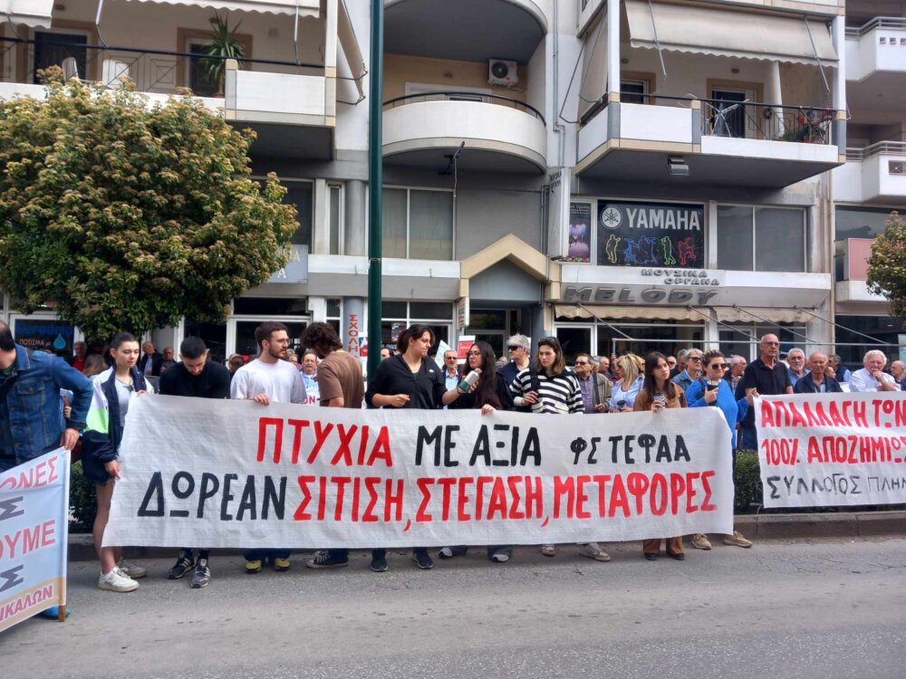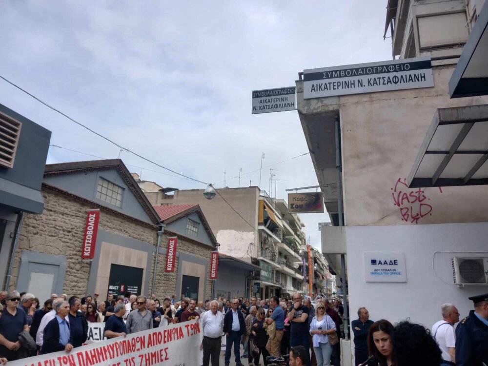 Στη συγκέντρωση μίλησαν μεταξύ άλλων ο Πρόεδρος του Εργατικού Κέντρου Δημήτρης Αρμάγος, ο πρόεδρος του Συλλόγου Πλημμυροπαθών Μεγάλων Καλυβίων και ο Πρόεδρος Νοσοκομειακών Γιατρών Τρικάλων. Έξω από το κτίριο της Εφορίας, κατατέθηκαν ψηφίσματα στον Υπουργό Ανάπτυξης Κώστα Σκρέκα για τις τιμές των προϊόντων, στον Προϊστάμενο της Υποδιεύθυνσης Δ.Ο.Υ. Τρικάλων Γιάννη Τρέλλη για τα εκκαθαριστικά ΕΝΦΙΑ που έλαβαν οι πλημμυροπαθείς, και στην Αντιπεριφερειάρχη Τρικάλων Χρύσα Ντιντή, για προβλήματα που συνεχίζουν να υπάρχουν ακόμα και έξι μήνες μετά τις πλημμύρες.