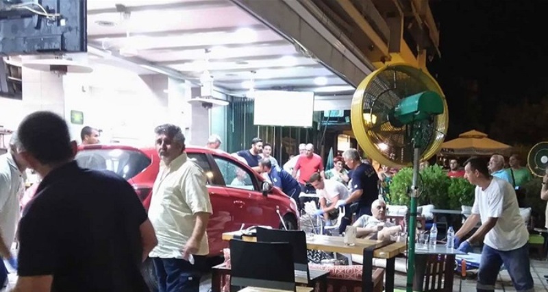 To αυτοκίνητο στην τρελή του πορεία παρέσυρε αρκετά τραπεζοκαθίσματα με αποτέλεσμα να τραυματιστούν συνολικά πέντε άτομα ενώ η οδηγός ήταν σε κατάσταση σοκ.